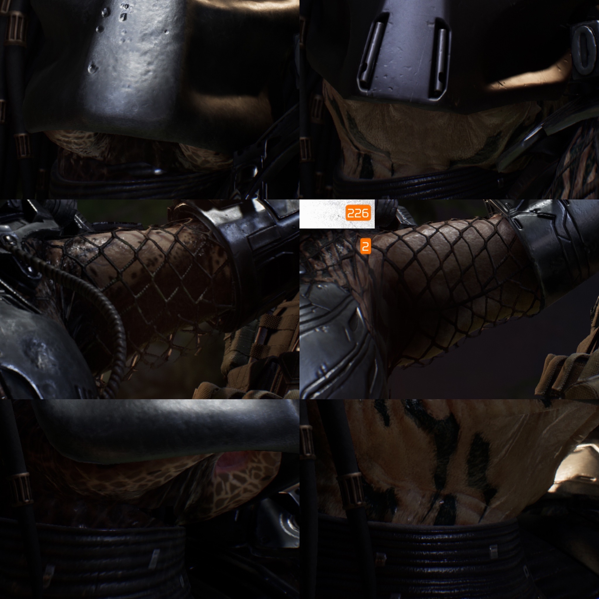 As you can see, there’s a few "missing body parts’ on him, like his head is docked on his neck. And his net body is a bit away from the body, it should be more attached. During matches, you can noticed too in some positions. The normal hunter and the other classes as well are ok, only on some female Predator’s you can may also see this, but not that away as in '87.