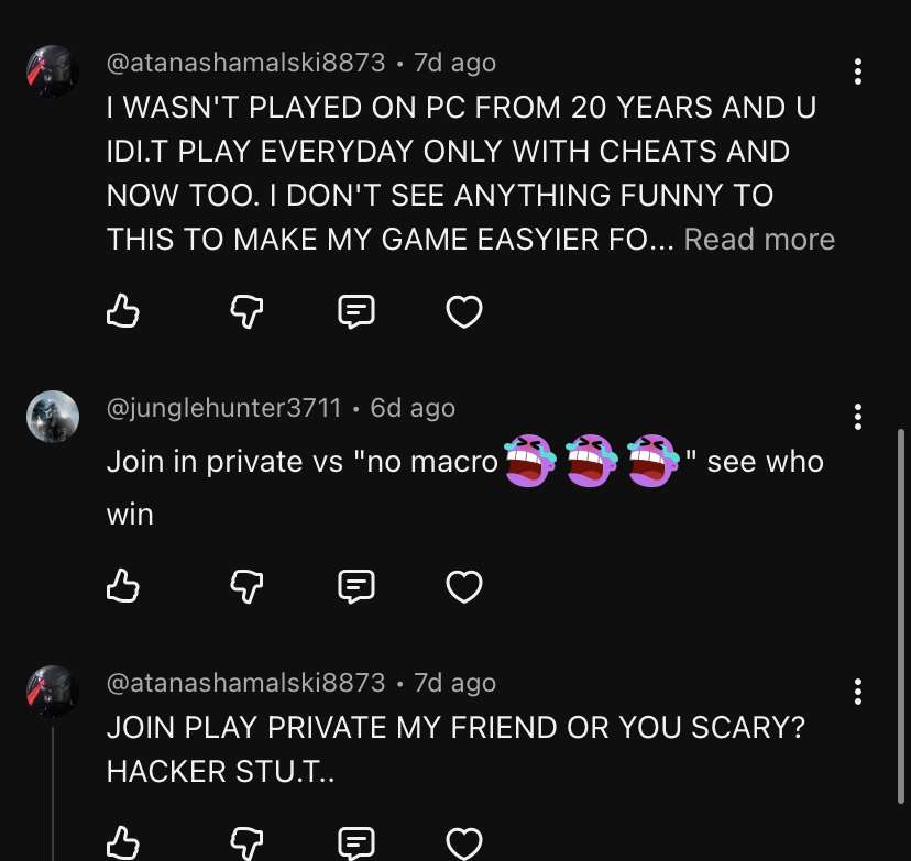 People complaining about macros on a game that when you press consecutive inputs too fast, it breaks to shit and stops working, lmao