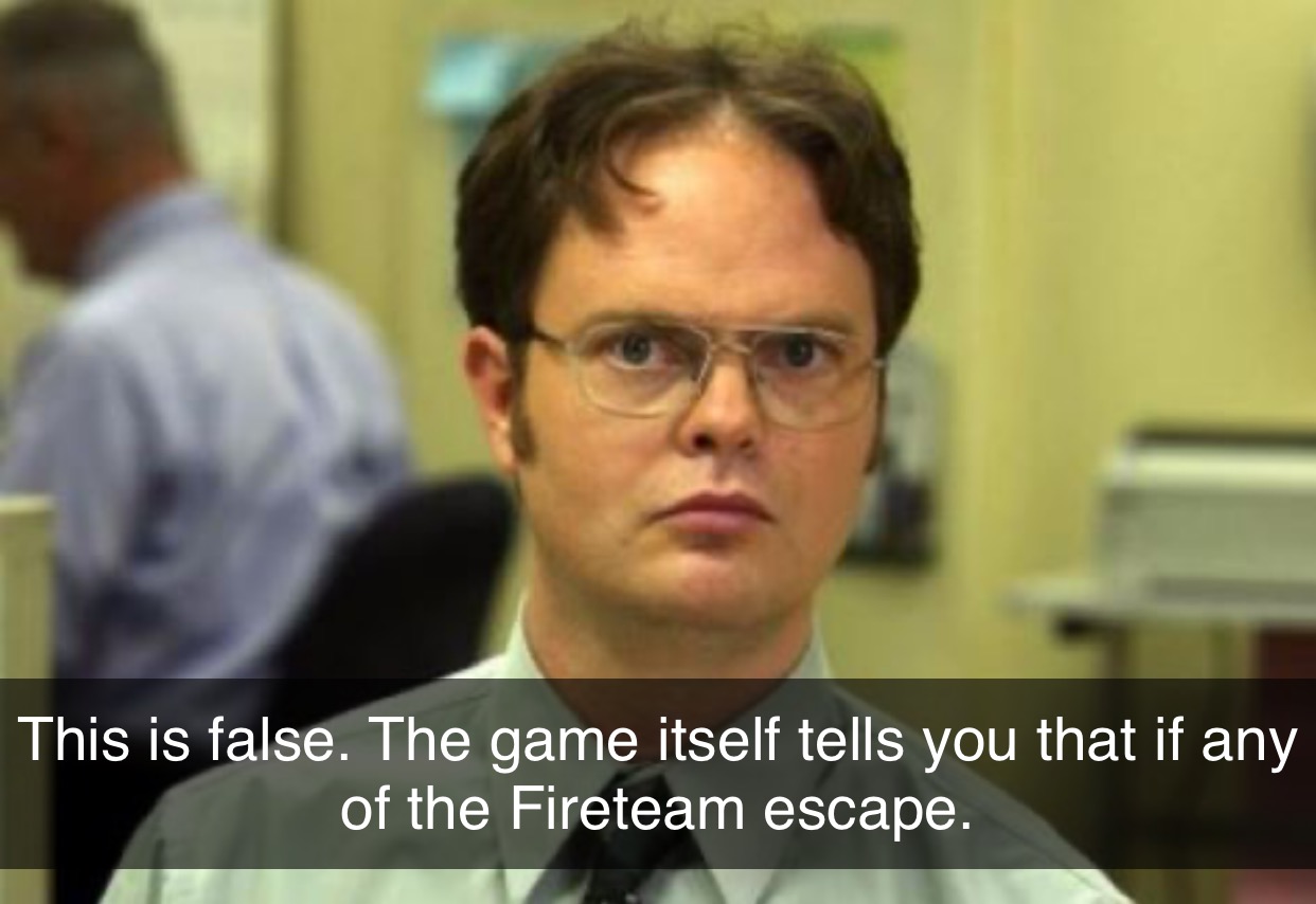 This is false. The game itself tells you that if any of the Fireteam escape, then it’s considered a loss. Look in the extras menu under predator, and you’ll see what I mean.
