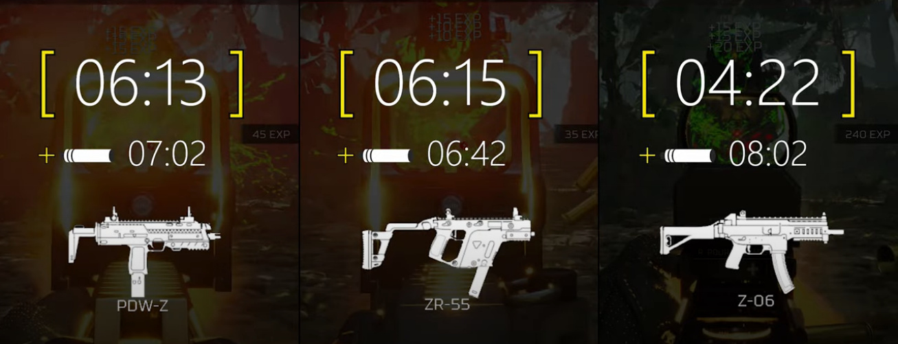 The Z06 (UMP) has or had the best TTK compared to the other SMGs before the buff to the PDWZ. Now I don’t know. The ZR55 has better burst but when you take into account reloading (you’re not killing the pred in 1 clip) its far worse then the Z06. The Z06 is also far better at range then the other 2, its quite stable (by comparison). Now if you unload your main weapon into the pred and only need some extra burst to take the pred down, the ZR55 was better (from close range).