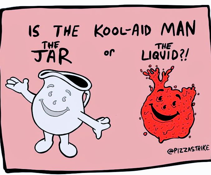 Hes the glass or his face would slosh around.