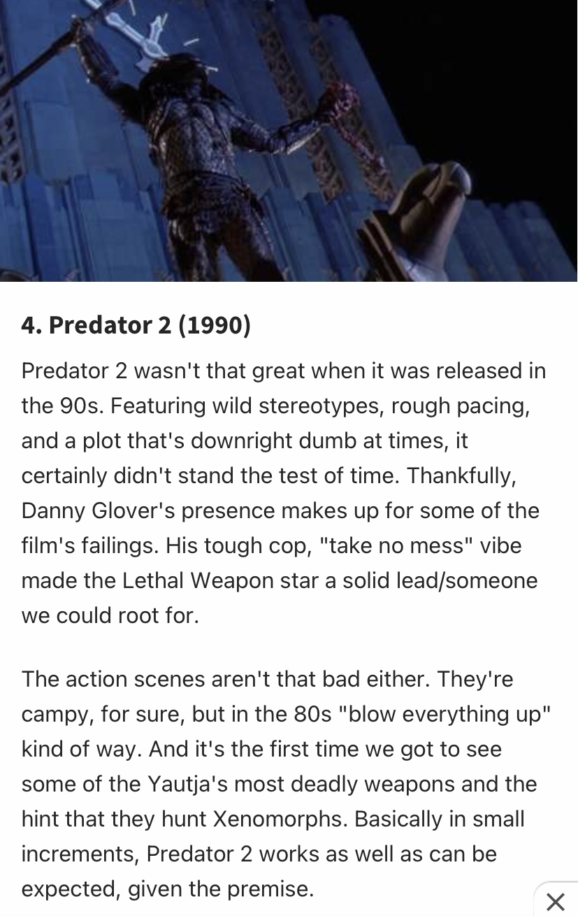 I know, this writer is evil because he liked The Predator more than Predator 2