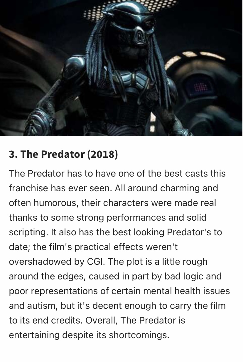 His ranking for Pred 2 is abysmal. The fact that its not #2 alone is a travesty, but his comments reek of Gen Z “journalism”, aka excessive opinionism to the point of falsity.