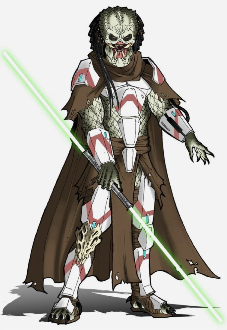 Imagine if a Yautja dropped in on the battle of endor taking trophies from the empire and rebellion alike