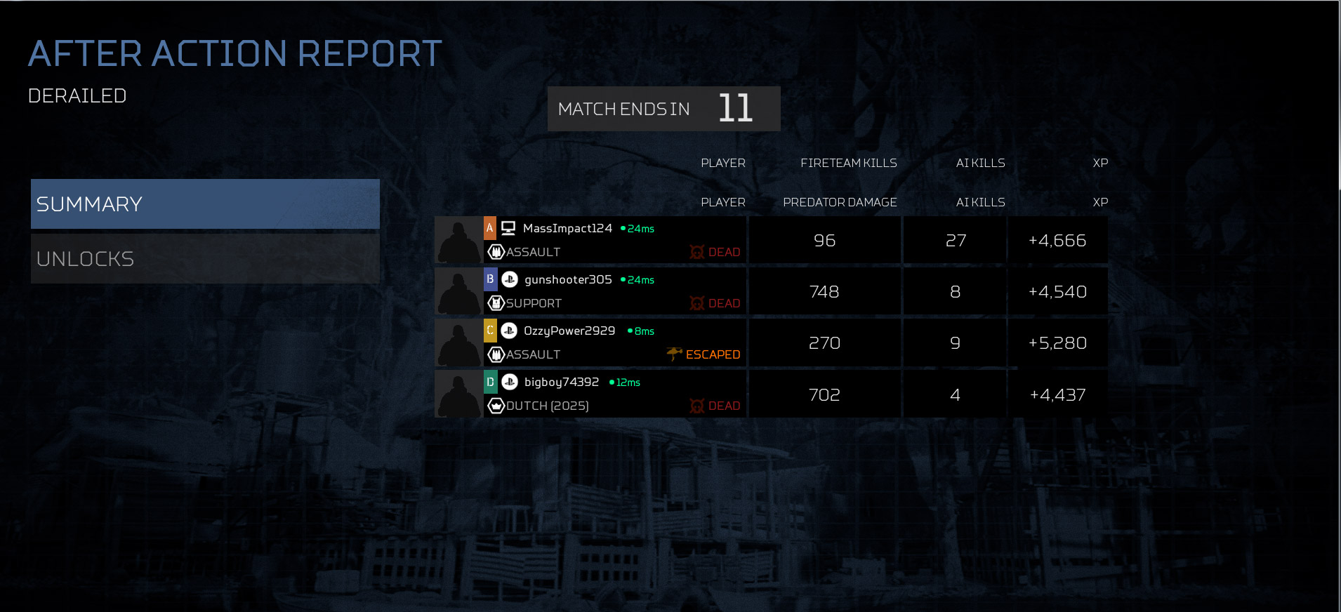 This is what I call “outlandish”. I was passively playing and this is what i got out of PS teams. AI kills look closely.