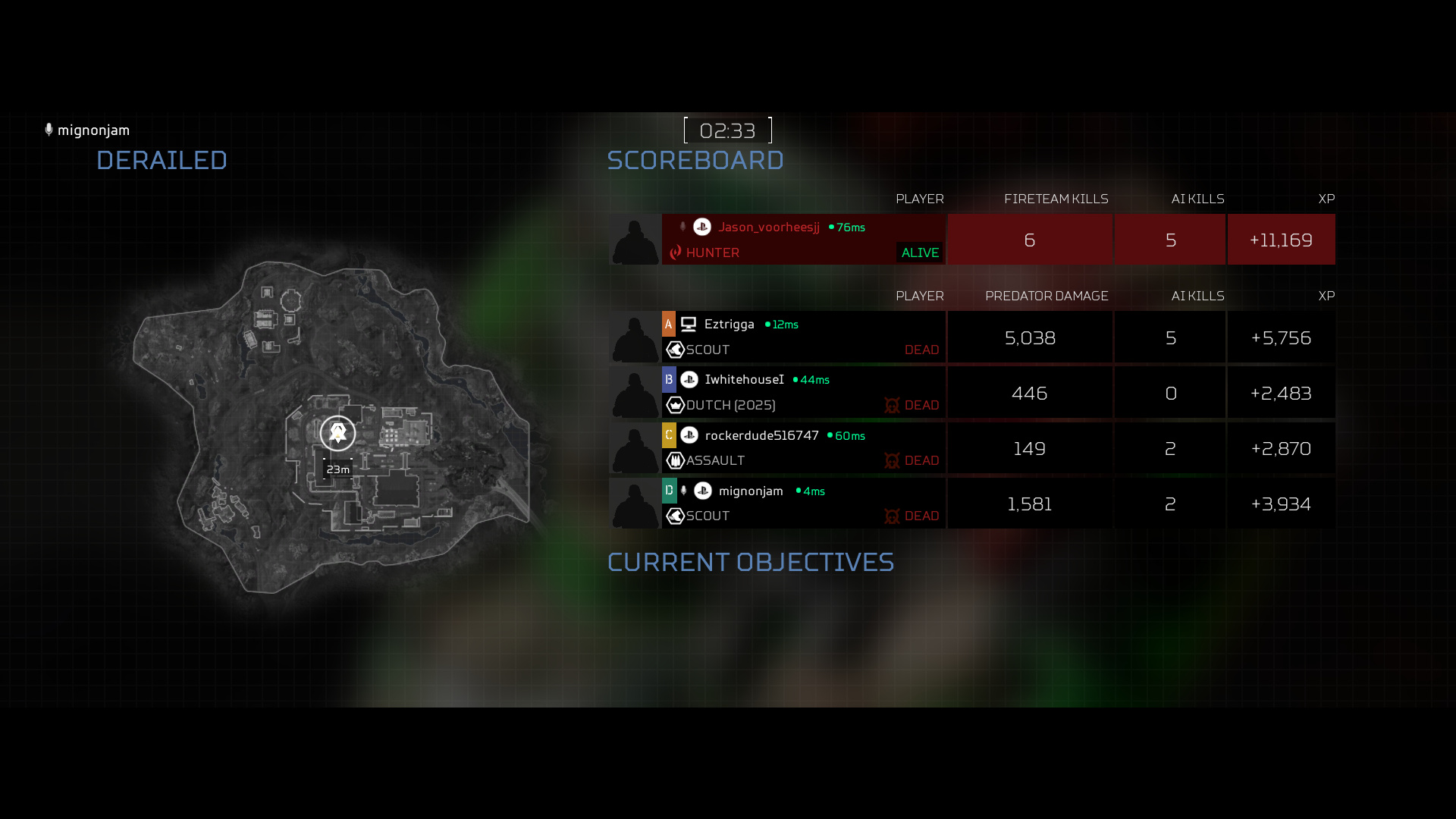 I encountered a good Ps4 player the other day. The fight was pretty relentless, as always my team wasn’t very helpful beside 1 guy who helped me shoot the pred. I couldn’t be very stealthy because the pred always came back to fight so we ran almost all the match. I used all my gears and ammos. The game ended in a 1vs1 and the pred won it over me !