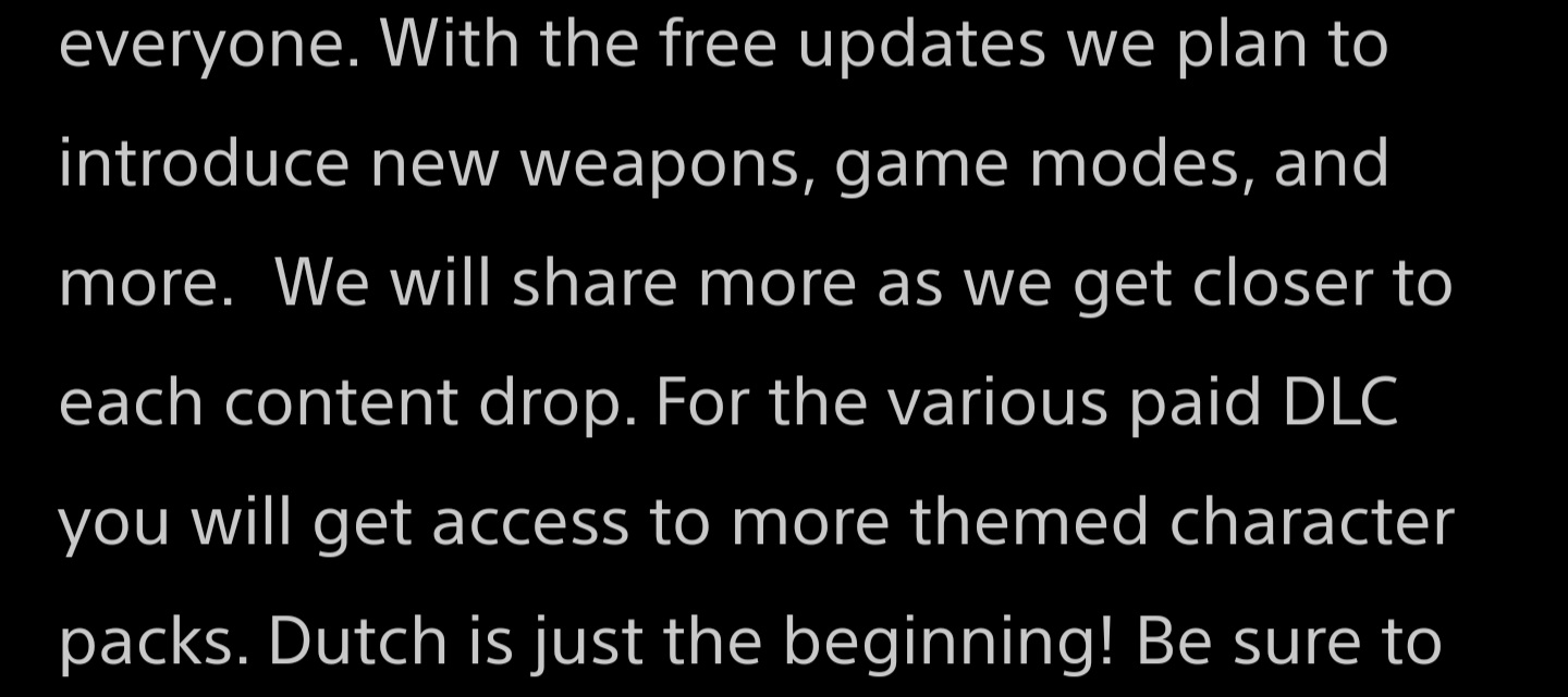 So I did some digging to find if the rumors/leaks for new gamemodes ever being a possibilities for this game (which wouldnt make sense if there wasnt) and found this in announcement for Dutch on the playstation blog, the links is here for those who want to read it.