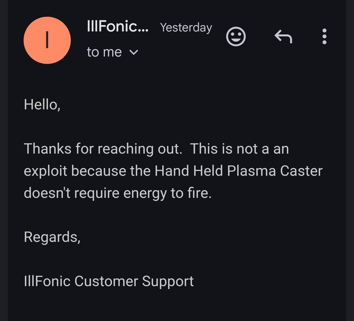 I’m speechless, we’re infested with bugs in this game and support doesn’t think that’s a bug, obviously we do not care about the ammo or energy