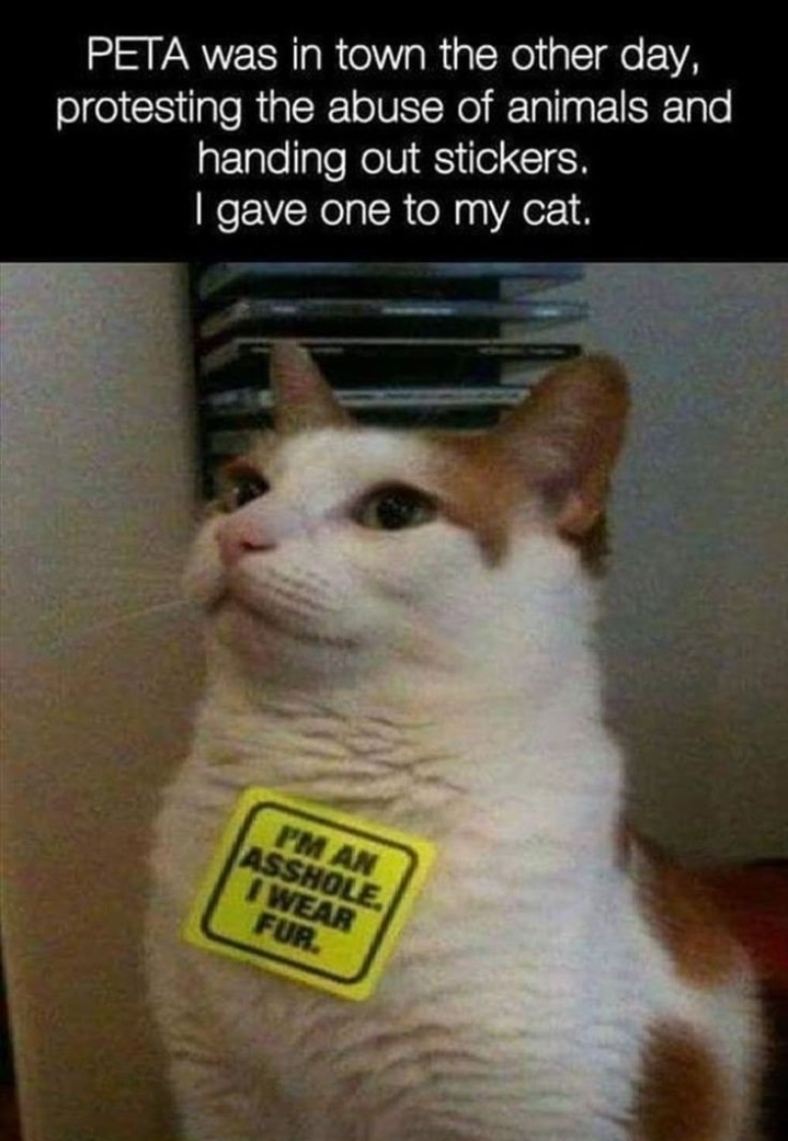 I once saw a PETA vehicle in macdonAlds drive thru lmao