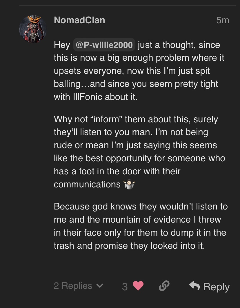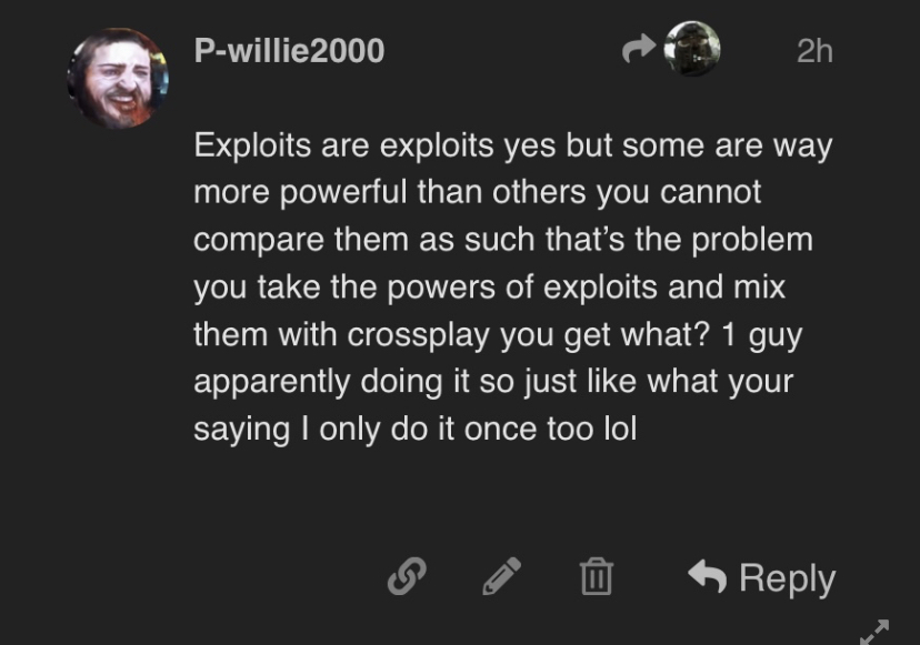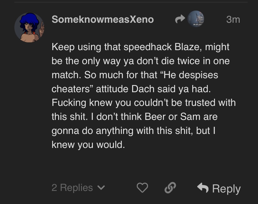 Xeno eventually saw what was capable and chilled out, basically finding broken shit was a catch 22 with the main idea being that if it’s reported then people will use it and it ended up coming true anyways for example Fanatic/Reckless