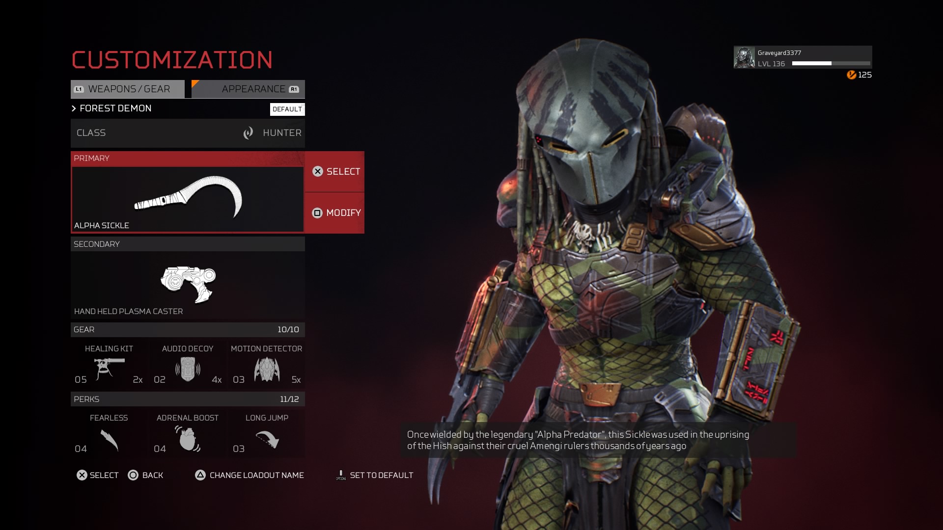 Welcome to the Forest Demon. He blends and stalks within the green parts of the environment. Using his cloak very rarely. Only when he goes in for the kill with his sickle that he found a long time ago. He never lets his victims see him. Even during their last breath. Some say he’s just a myth.
