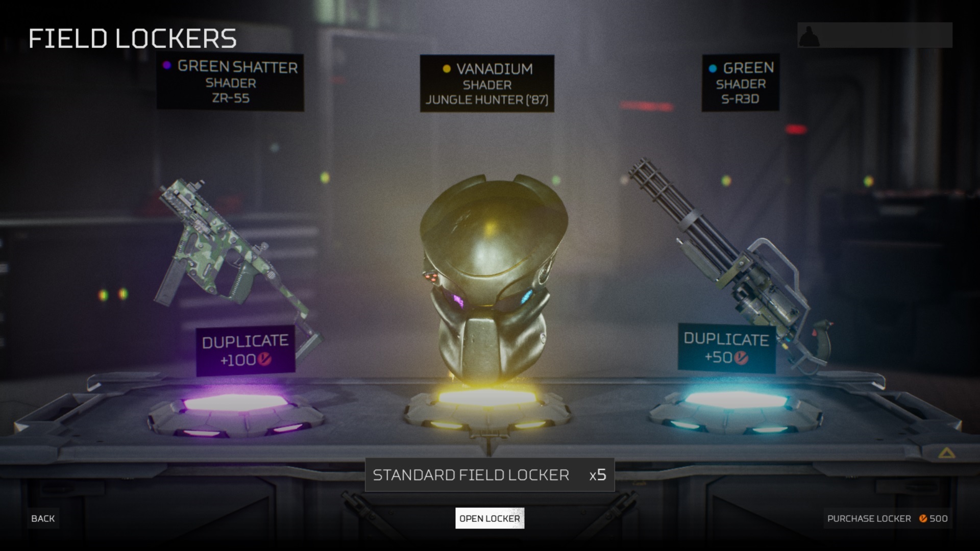 It’s like a 1 in 1000 chance to unlock it using the field lockers “Don’t give up hope” you still have the City Hunter DLC “Predator 2 is still a good movie” but I do hear ya mate, it would have been great if the Jungle Hunter 87 was a DLC this way everyone would have it by now