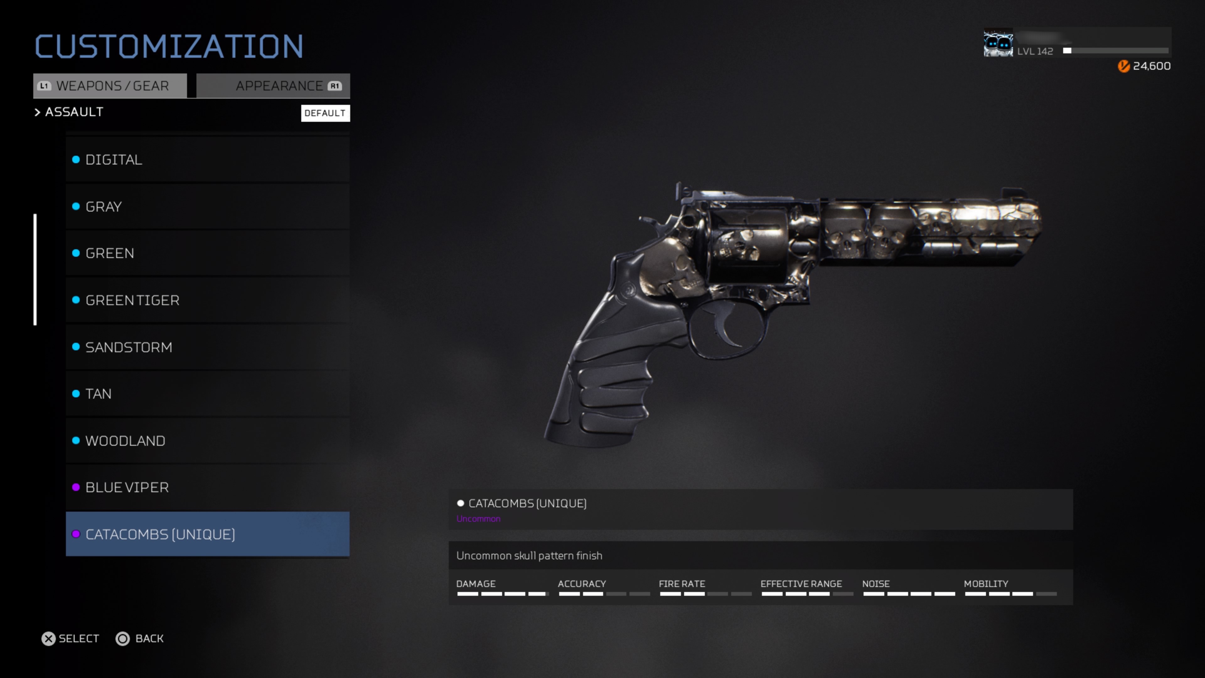 Of all the shaders available for all the weapons, I find the “Catacombs” shader for the 2XL revolver the most bad ass! I wish that same skull design was implemented into more of the weapons!